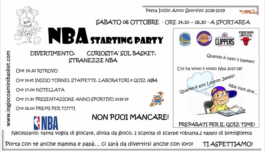Sabato 9 ottobre alle ore 14.30 a SportArea si svolgerà la Festa di Inizio Anno Sportivo di IoGiocoAMinibasket!!!