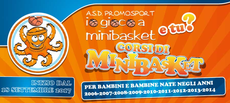 Tutto è pronto per l’inizio dell’attività̀ di minibasket della ASD PROMOSPORT, con il suo polo dedicato ai bambini dai 3 agli 11 anni IoGiocoAMinibasket, che da lunedì̀ 18 settembre comincerà̀ con il solito coinvolgimento ad allietare i pomeriggi sportivi di tanti mini-atleti di Cuneo e dei Comuni limitrofi per la stagione sportiva 2017-2018.